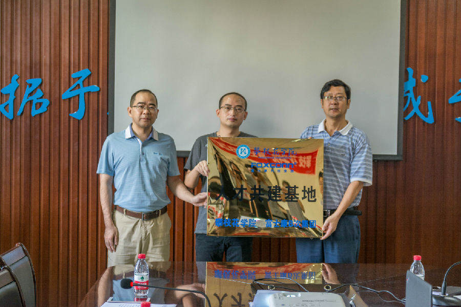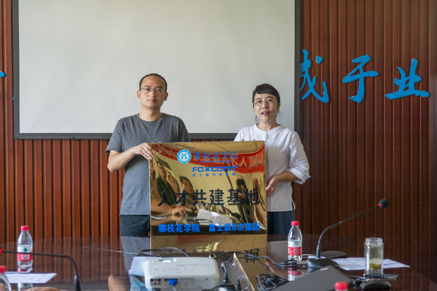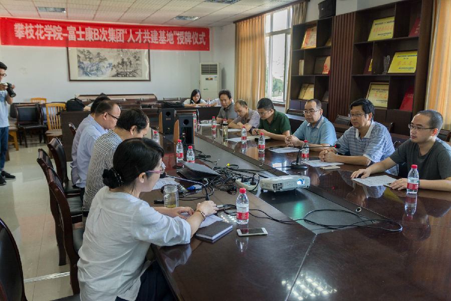 本讯报(杨瑞 钟琳敏报导)九月三十日早上九点,我校与富士康B次集团人才共建基地授牌仪式在我校励志楼四楼会议室准时开始,攀枝花学院副校长石维富,攀枝花学院招就处副处长刘东康、数计学院院长张靖、数计学院党委书记谭千蓉、电信学院副院长廖其龙、富士康B次集团技术总监向能德、数计学院学生科科长方青松、数计学院办公室主任罗淼等相关人士参与该仪式