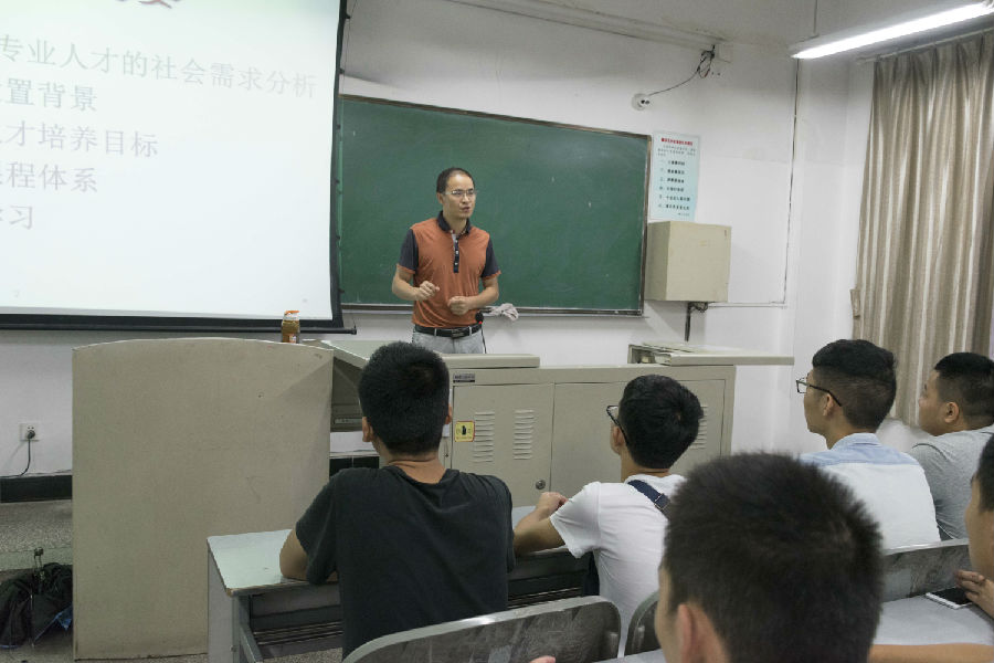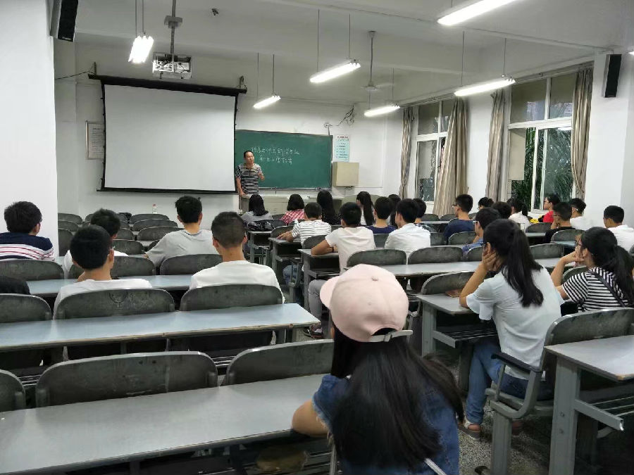 本报讯(雷虹 董倩报道)为了让2017级新生更了解专业概括,数计学院于2017年9月10日上午八点半在二教2-201、2-214、2-302、2-303同时举行对各专业新生进行专业思想教育,本次讲座主讲人由教研室兰全祥 、银星、罗学刚、秦振涛等老师担任,一同到场的还有2017级全体新生。