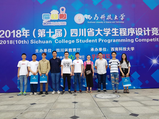 6月1日到3日,2018年(第十届)四川省ACM大学生程序设计竞赛在西南科技大学隆重举行。攀枝花学院第四次参赛,在陈斌老师和罗佳老师的带领下,共派出三支队伍参赛,分别为:“本次获奖名单宣读完毕,请有序离场/Game Over”,组员:骆小朋、张超、姚庆操;“蜡笔小新不带笔/Crayon Shin-chan No Crayon”,组员:丁川芸、寇国钊、杨廷发;“天若有情天亦老,我为长者续一秒/'+1s”,组员:马乙黎、罗德松、刘鹏。骆小朋、张超、姚庆操组成的参赛队伍获得银奖,陈斌老师荣获“优秀指导教师”奖,取得了我校参加此项赛事以来的最好成绩!值得称赞的是,虽然还有2支参赛队没有获得获项,但都成功通过了2题,这也是另一个重要的进步。