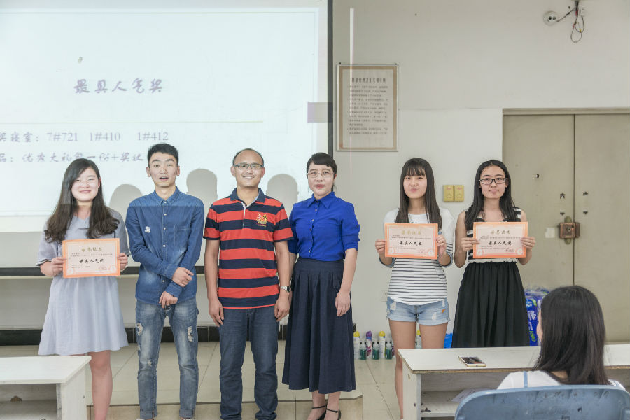 首先,由谭书记为此次典礼致词,表明对此次活动的大力支持,也对获奖寝室表示最热烈的祝贺,希望能建设优秀文明寝室风,学院各寝室一起努力打造,并且希望获奖寝室能继续保持良好文明寝室风。本次获奖的共有18个寝室,有获最具创意奖7#724寝室、最具温馨奖7#736寝室、最具特色奖10#853和1#410寝室以及最具浪漫奖7#701寝室,并由谭院长为其颁奖留影。其余12个寝室则获得优秀奖由方老师为他们颁奖,当然也有由微信投票选出的最具人气奖,由学生会副主席肖文胜为获奖寝室7#721、1#410、1#412颁奖。最后,由方老师为这次颁奖典礼作最后总结。本次寝室文化节颁奖典礼完美落幕。