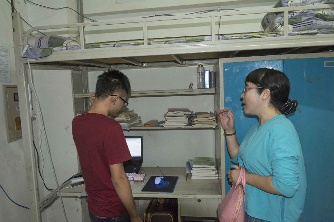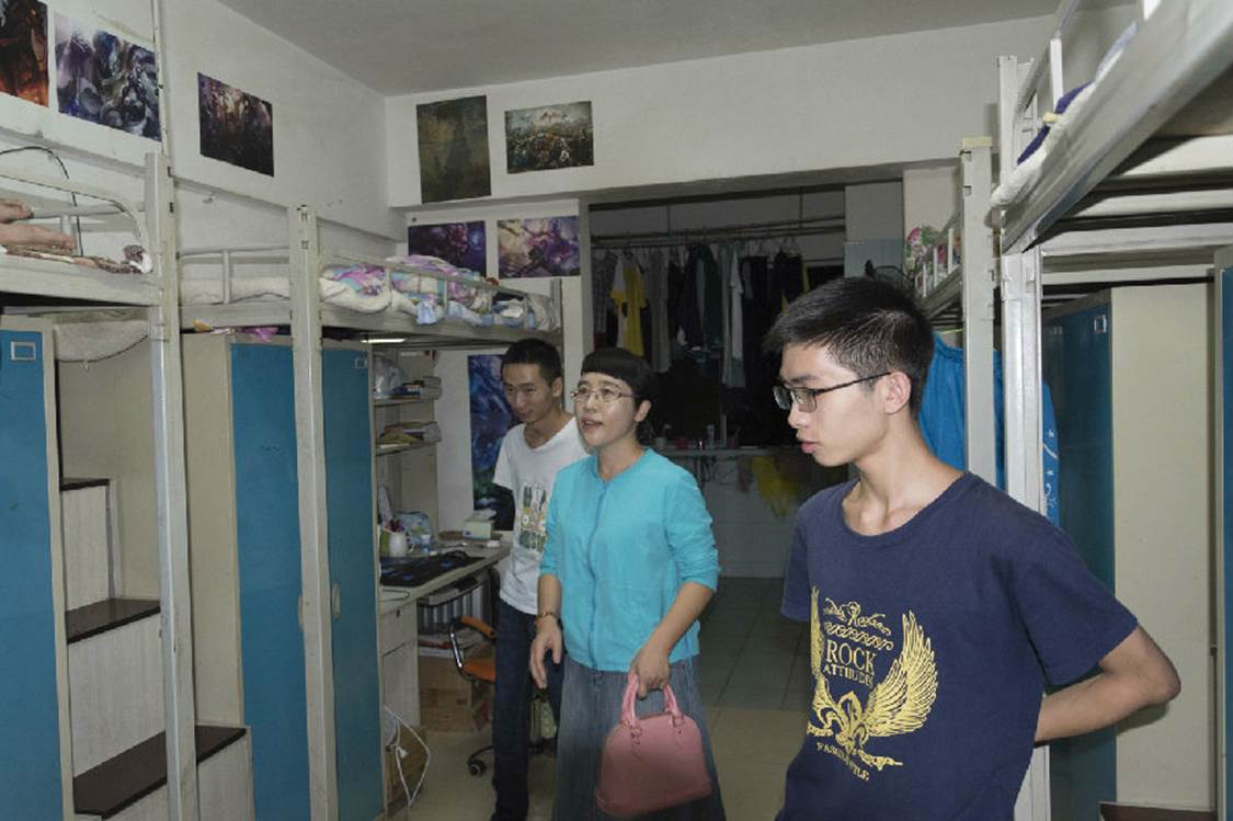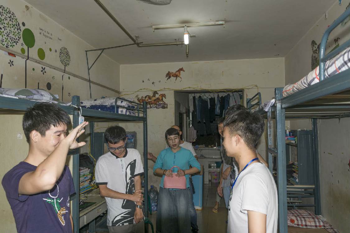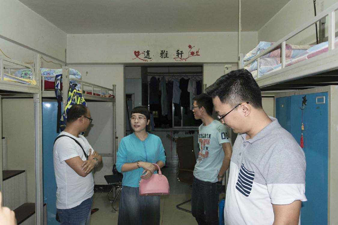 本报讯(于宸镔 雷虹郑昌兵 许丽君报道)2016年10月7日晚,数学与计算机学院党总支书记谭千蓉教授、学生科科长方青松老师、2013级辅导员程江珂老师、2016级辅导员张丽老师来到寝室进行例行检查。