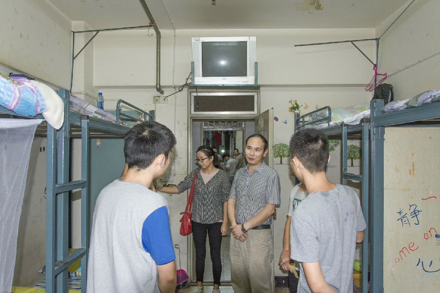 张院长同张丽老师来到寝室后,特别关注了远道而来的外省新生,认真倾听了他他们对学院的意见和建议并与新生家长亲切交谈。张院长感谢家长的信任,将孩子送到学校,学校一定会努力将学生培养成高品质优秀人才,不负家长所托。同时张院长希望新生同学们摒弃在大学玩乐的想法,应当努力学习,提早做好开学学习准备。