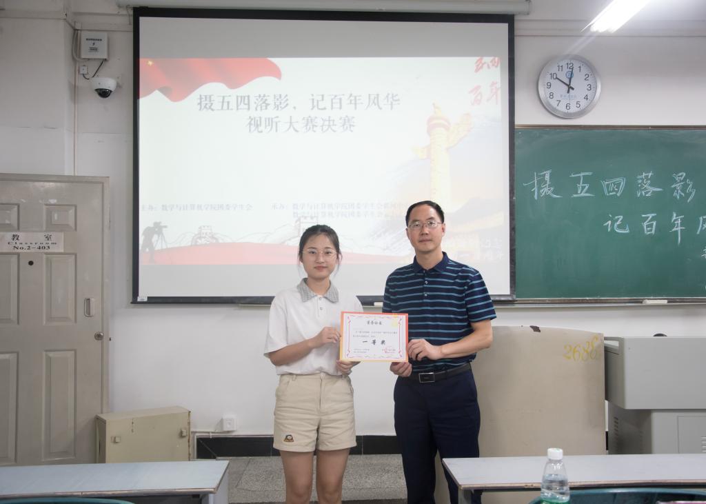 本报讯(庞晓玉 报导)2019年5月15日19:40,数学与计算机云上工作室和新闻中心联合在本部二教2-403举行了以“摄五四落影,记百年风华”为主题的视听作品大赛决赛。团委书记张清学、分团委书记朱华、计本教研室主任兰全祥、2017级辅导员叶珊分别担任此次活动评委。