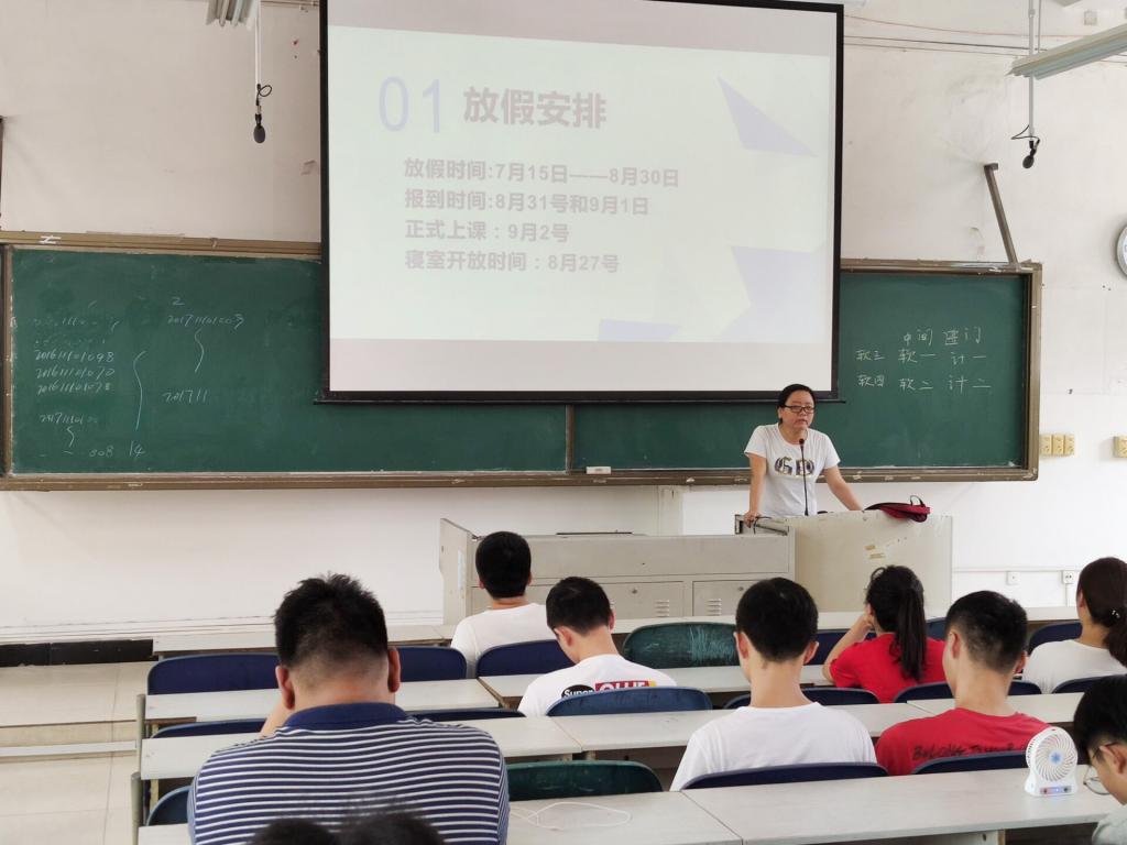 本报讯(黄铮 报导)2019年7月3日下午3点,数学与计算机学院在我校本部二教2-1召开2018级计算机科学与技术、软件工程年级大会。2018级计算机科学与技术、软件工程全体成员参加本次大会。大会由2018级辅导员龚萍老师主讲。