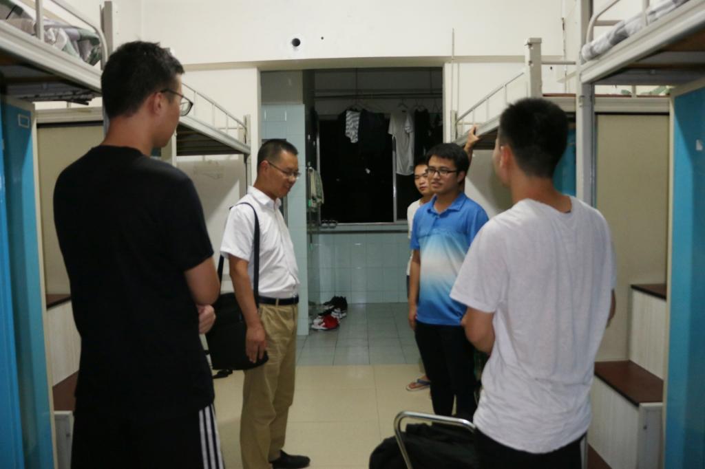 本报讯(黎婷报导)7月29日晚上,数学与计算机学院党委副书记林宗兵老师和分团委书记朱华老师一行人,走访数计学院暑期留校学生宿舍,了解留校学生们的需求和学习生活状况,并送上了暑期慰问与祝福,提醒同学们注意不要晚归、服从宿舍管理员的安排和寝室卫生打扫以及注意水电安全。