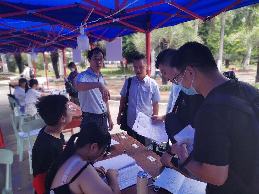 9月13日,是数学与计算机学院老生集中报道的日子,学院党委书记张清学、副书记林宗兵、学生科长邓勇军、及各年级辅导员到集中报道点,看望报道学生及志愿者,并关切的提出了疫情常态化期间学生要注意的各项事宜。