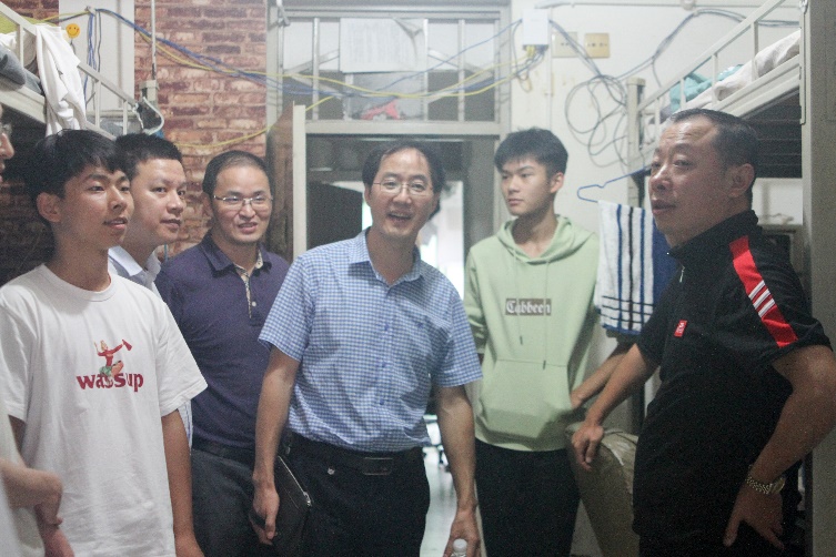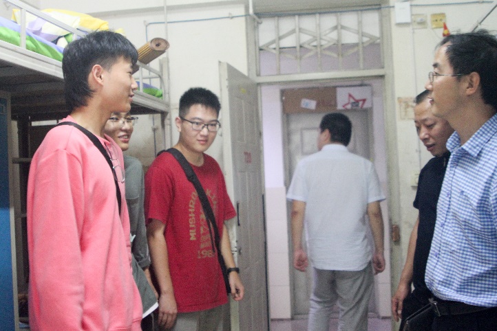 本报讯(周子涵报道)9月19日下午,我院党委书记张清学、党委副书记林宗兵、分团委书记邓勇军、院长助理罗学刚和网络工程指导老师张杰携同学生会主席团成员巡查新生寝室。