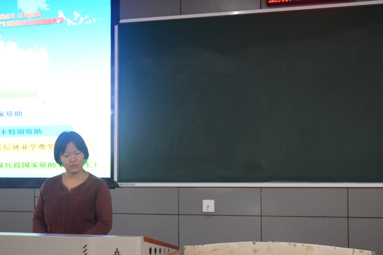 会议伊始,燕丽霞老师主要介绍了大学生的资助类型,有国家助学金贷款、国家励志奖学金、应征入伍国家资助、建档立卡特别资助等,并介绍了每项资助的金额标准和期限。她还详细讲了我校生源地贷款办理流程,分为本专科生和研究生两种标准。她强调了服兵役国家资助对象的认定和建档立卡特别资助申请流程。最后,同学们提出自己的问题,燕丽霞老师都非常耐心地一一为其解答。