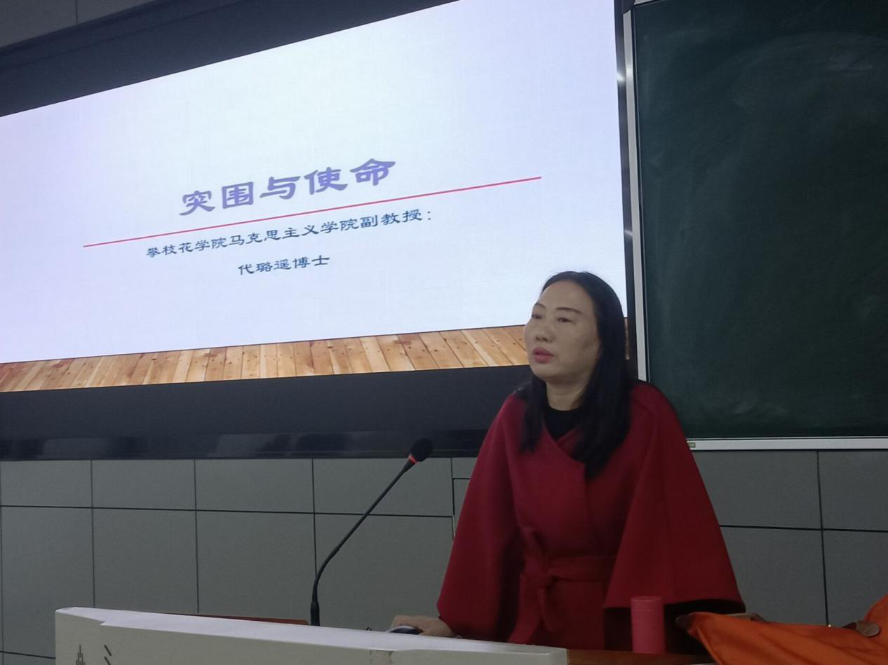 本报讯(蒋蕊宇 王俊楠 报道)12月9日晚上,我院在二教2-1开展了国际教育讲座。参加此次讲座的人员有党委书记张清学、学生科分团委书记邓勇军、全体辅导员及20级全体新生。我院邀请攀枝花学院马克思主义学院副教授,代璐遥博士担任此次讲座的主讲人。