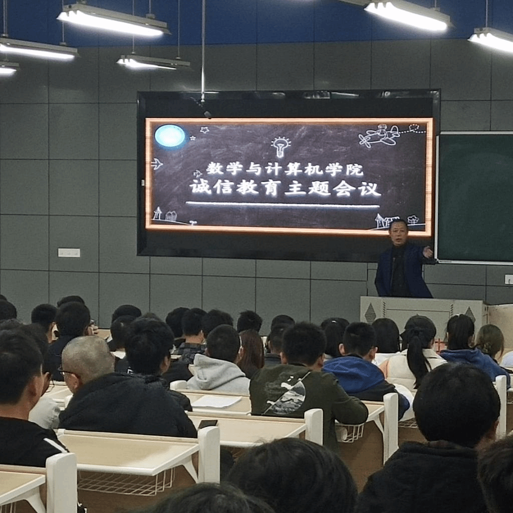 12月9号晚上,我院在二教2-1召开了诚信教育主题会议。我院党委书记张清学、学生科科长兼分团委书记邓勇军、2020级辅导员刘颖及2020级全体同学参加了此次会议。张清学担任本次会议的主持。