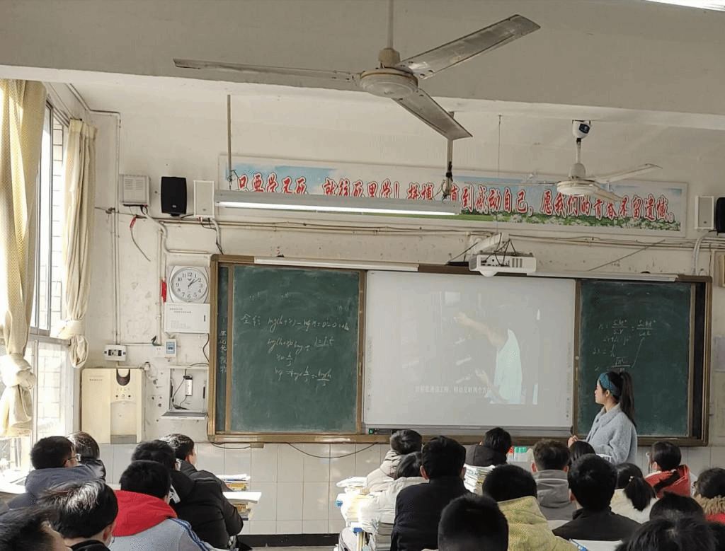 | 雷丹在成都新都区香城中学给高三同学做招生宣传 |