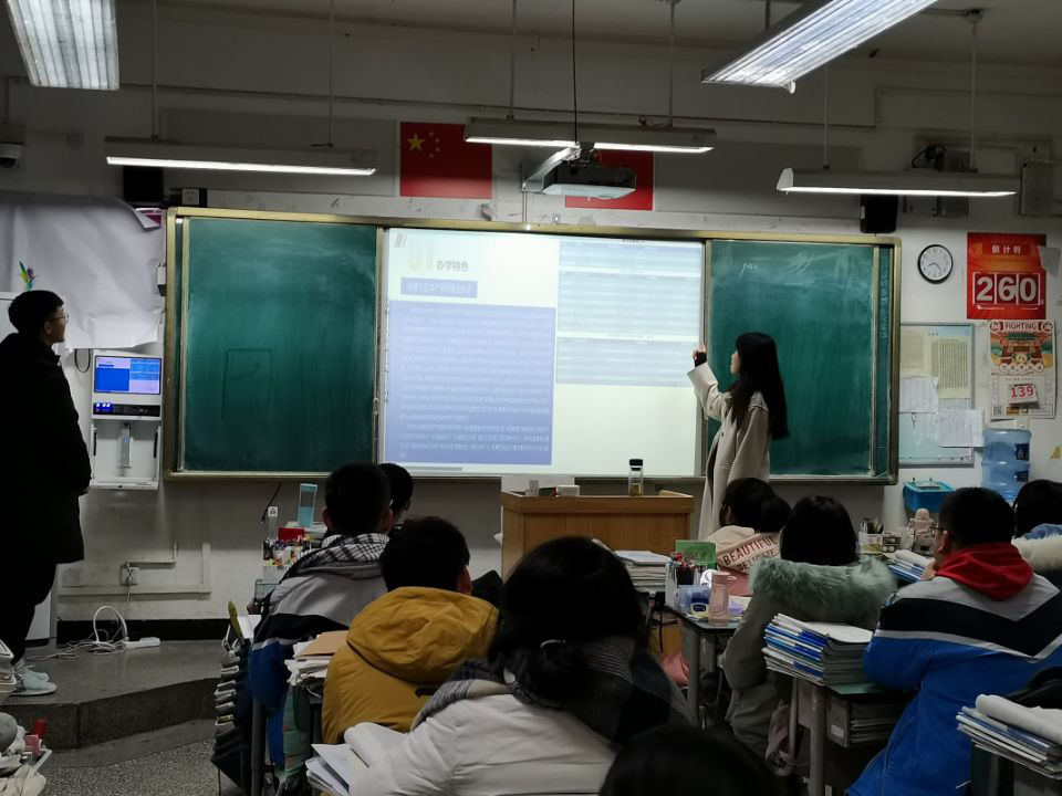 | 吕嘉欣同学在成都市新都升庵中学给高三同学做招生宣传 |