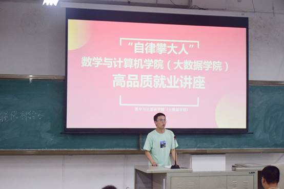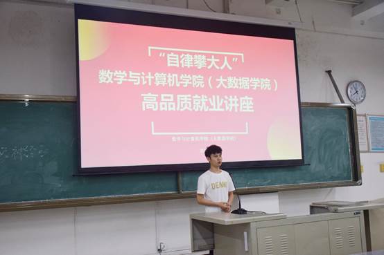 本报讯(赵林 报道)为深入贯彻落实习近平总书记关于高校毕业生就业工作重要指示精神,全面落实党中央、国务院以及教育部关于“稳就业”的各项部署要求,积极应对疫情影响,实现毕业生充分高质量就业的目标,争做自律攀大人。我院于5月19日19:40在2-5教室举办“自律攀大人”高品质就业讲座。参与此次讲座的人员有两位2017级优秀毕业生以及学生代表。此次讲座由学生会副主席刘安主持。