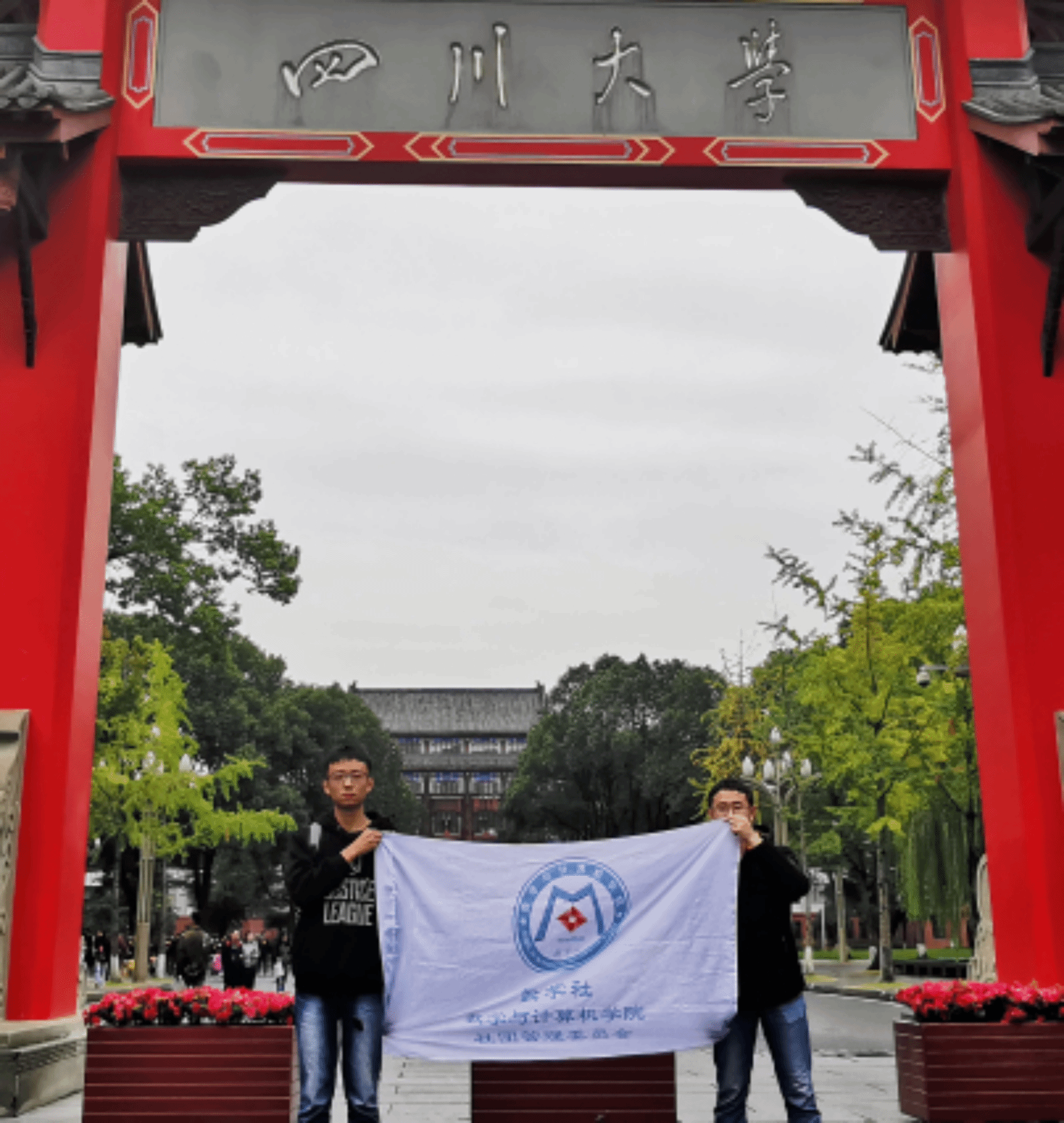 | 数计学子在四川大学门口合照 |