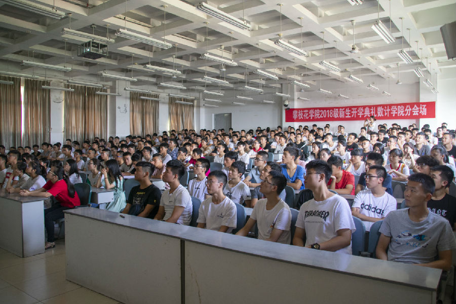 9月6日8:30,我校在学生会堂举行2018级新生开学典礼,数学与计算机学院部分学生在分会场二教2-5与2-513观看现场直播。典礼由副校长石维富主持。