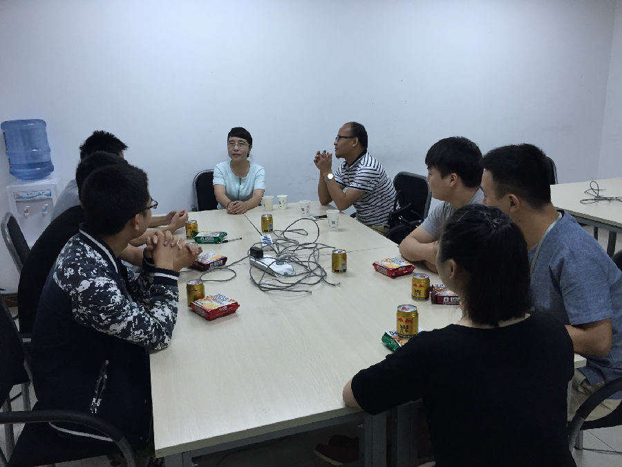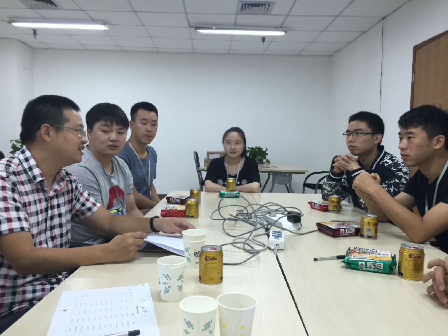谭书记一行首先听取了互联汇智有限公司总经理何总、校企合作部经理杨宇等对我院实训学生在企业期间的学习、工作和生活情况的详细汇报,他们详细介绍了同学们前一阶段的实训内容和学习表现,对我院学生的学习态度、项目能力和综合素质给予了高度的评价,并详细介绍了实训学生下一阶段的学习内容和就业计划。