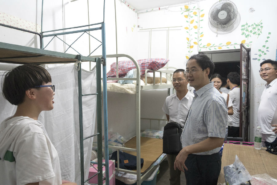 本报讯(巩晋禹报导)2018年9月2日晚,数学与计算机学院党委书记张清学、党委副书记林宗兵携同数计学院学生科科长程江珂、数计学院分团委书记朱华及各年级级辅导员一同视察2018级新生寝室准备情况并对到校新生表示慰问。