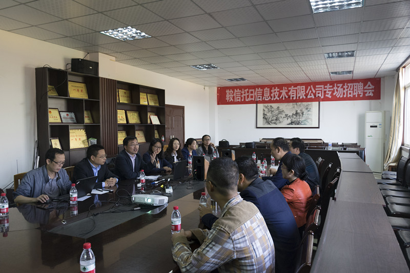 本报讯(周思懿 钟琳敏报道) 为了给学院学生搭建实践教育、科研创新平台,拓宽就业渠道,数计学院于2018年3月15日上午在我校励志楼四楼会议室同鞍信托日信息技术有限公司举行了专场招聘会签字仪式。数计学院院长张靖、党委书记谭千蓉、学生科科长方青松等老师以及鞍信托日信息技术有限公司常务副总杨旗等公司代表出席了此次仪式。