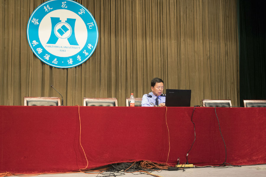 本报讯(许丽君 袁慧报导),为增强2017级新生安全意识,提高自我保护能力,数学与计算机学院于2017年 9月9日上午在我校会堂举办面向2017级新生的安全思想教育讲座。本次讲座由攀枝花市公安局法制支队袁斌执讲,学生科科长方青松主持。2017级新生辅导员朱华以及2017级全体新生参加本次讲座。