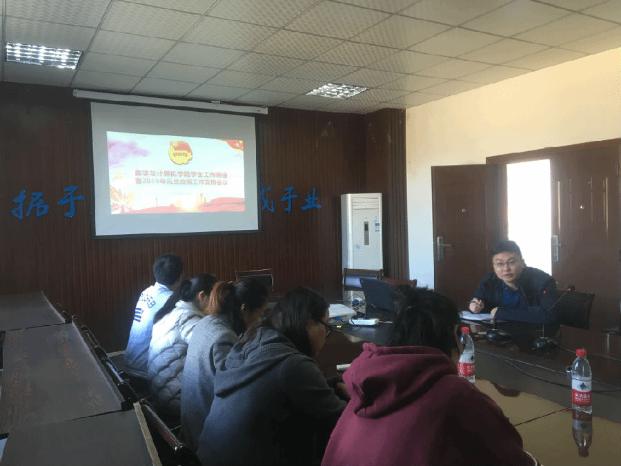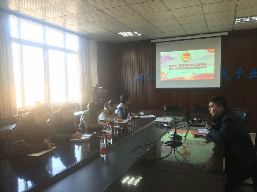 本报讯(余龙报导)12月27日9:30,数学与计算机学院学生工作例会暨2019年元旦放假工作安排会议在砺志楼四楼会议室召开,数计学院学生科科长程江珂、分团委书记朱华、辅导员张丽、龚萍、刘颖、叶珊参加会议。