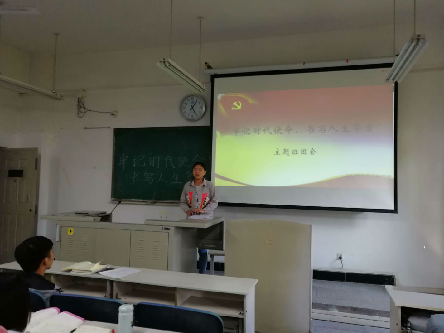 本次班会中,主持人林琪介绍了本次主题班会“牢记时代使命,书写人生华章”并宣布班会开始。全班同学首先观看建党历史的简介视频,了解党的峥嵘岁月;其次由学生党员2016级信息与计算机科学本科班班长王光琴发表讲话,向大家分享交流她的党员历程以及学习方法,并鼓励同学们积极参与活动,努力学习奋斗;再由胡涛同学上台分享本次班会的心得体会。最后主持人宣布本次班会结束,同时呼吁班上同学:勿忘初心,牢记使命,统一思想,凝聚共识,深刻领略党代会的精神要义。