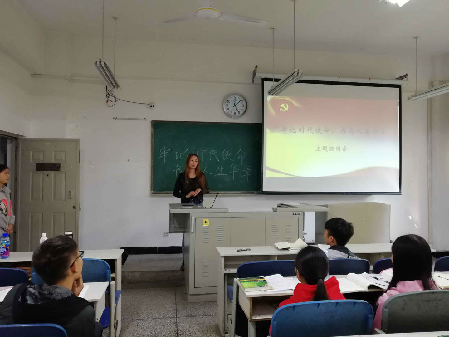 本报讯(周玉洁报导)为进一步把广大党员和全校师生的思想和行动统一到党代会精神上来,把智慧和力量凝聚到党代会确定的战略目标和各项任务上来,数学与计算机学院2017级软件工程四班于2018年11月20日17:00在二教2-203开展了以“牢记时代使命,书写人生华章”为主题的班会。此次班会由林琪同学主持。