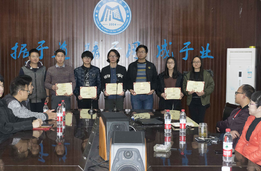 本报讯(钟琳敏 冯泉报道)2017年12月27日中午12时50分,数学与计算机学院寝室文化节、学风建设之“开心辞典”活动、校内蓝桥杯选拔赛颁奖典礼于励志楼四楼会议室举行,与会人员有数计学院党委书记谭千蓉、学生科科长方青松、办公室主任罗淼及团委学生会主席团成员,主持人欧亚。一同到会的还有各项活动的获奖人员。
