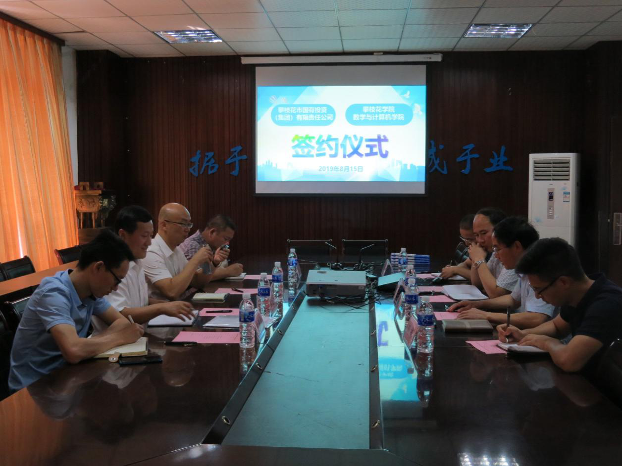 2019年8月15日下午15点,数计学院与攀枝花市国投集团在数数计学院会议室召开了交流座谈会和合作协议签字仪式。出席会议有攀枝花市国投集团董事长赵路、攀枝花市国投集团运营管理部副部长陈宏涛、长果康养公司总经理唐恩尧、浪潮攀枝花公司市场总监史渊木、数学与计算机学院院长张靖、数学与计算机学院党委书记张清学、数学与计算机学院院长助理罗学刚、数学与计算机学院实验中心主任刘彬。